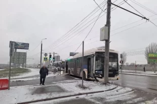 Автобус врезался в столб у ТРК «Акварель»: 4 пострадавших