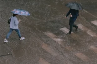 Небо затянуло тучами к полудню, прогремел гром и на город обрушился дождь, улицы мгновенно превратились в реки.