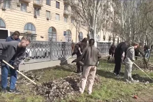 В уборке территорий города принимают участие работники предприятий, коллективы коммерческих структур, студенты и преподаватели вузов м ссузов.