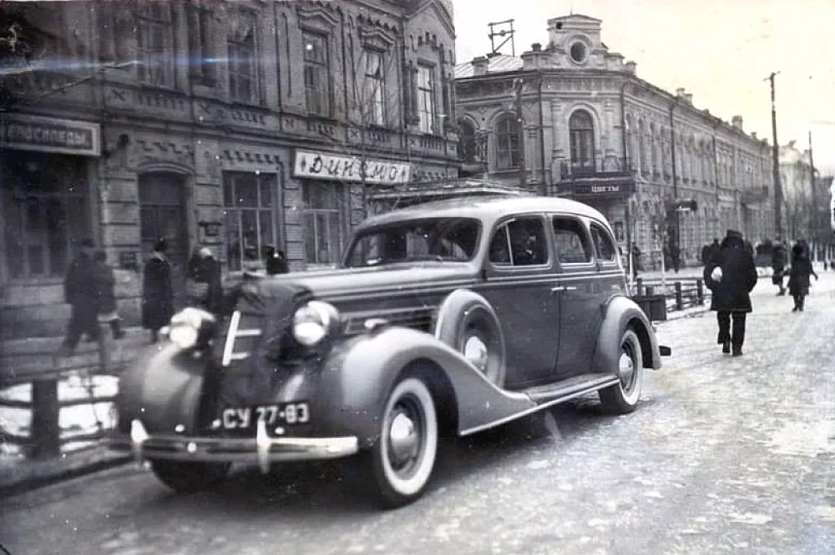 «Автомобиль ЗИС-101 — гордость и краса советского автопрома 1930 годов. В Сталинграде их было немало, хотя, конечно, автомобиль тогда, тем более такой, был роскошью. Точный цвет черно-белый исходник не передает, но это определенно не черный — встречались такие автомобили и зеленого цвета», — рассказывает краевед.