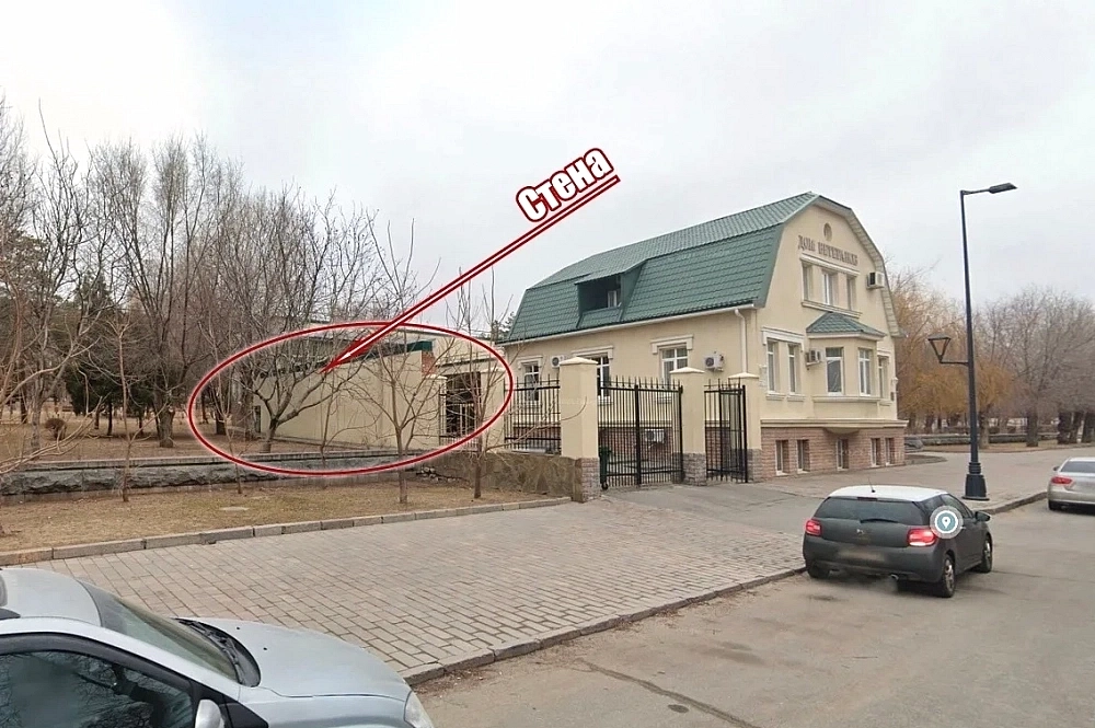 Здание бывшей филармонии построили в 1943-1945 годах, стену-брандмауэр оставили в качестве забора при новом особняке. Выполняет эту функцию она и в наши дни.