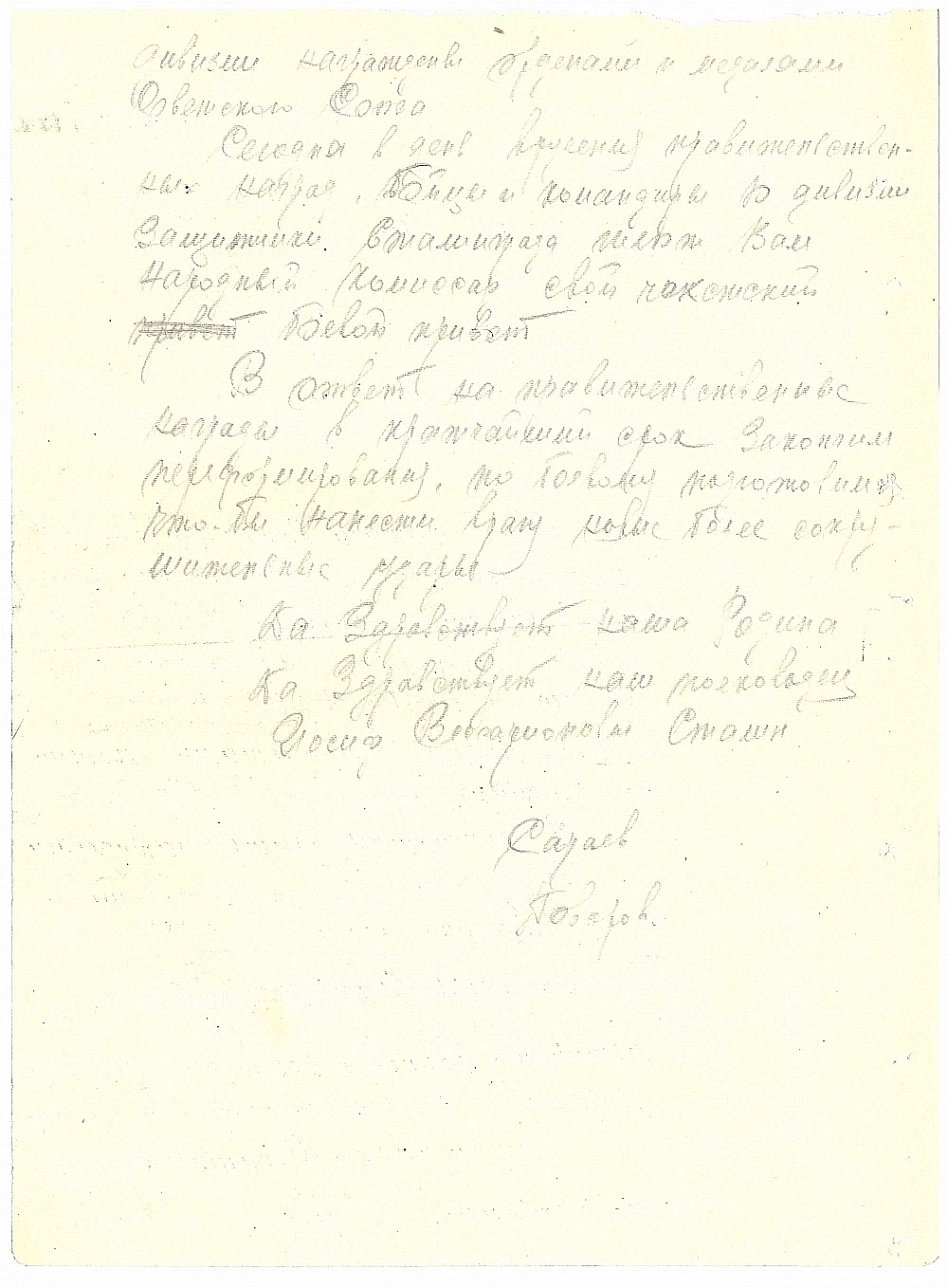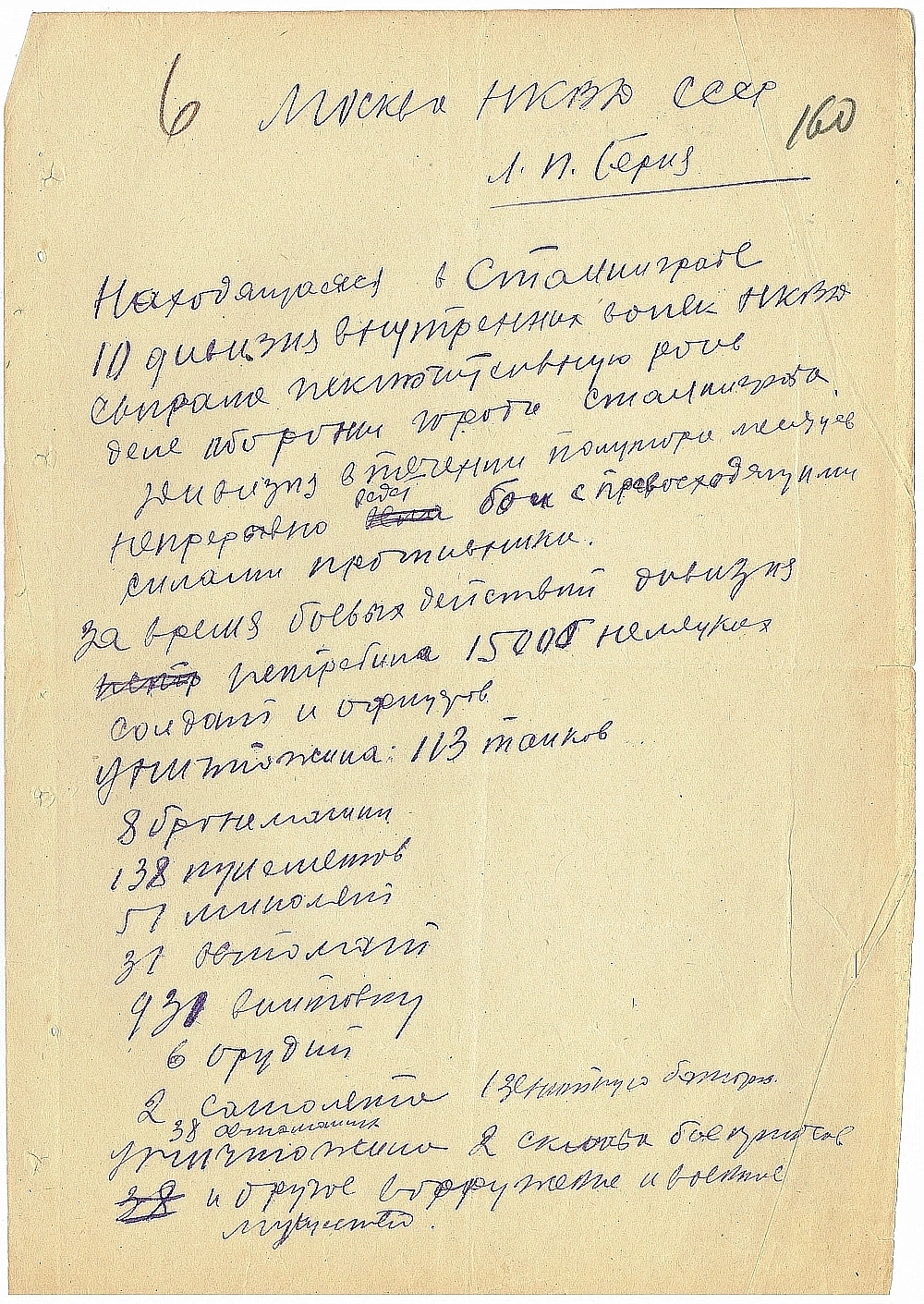 Также в документе приводятся данные о количестве уничтоженной техники и вражеских солдат. Сараев подчеркивает готовность чекистов выполнить новые боевые задач, которые поставит перед ними руководство в рамках Сталинградской битвы и Великой Отечественной войны.