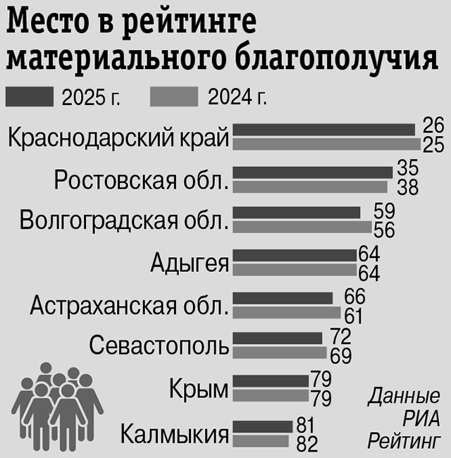 Волгоградская область заняла 59-е место, тогда как в 2024 г. позиция региона была 56-я. Значительное падение показала Астраханская область, которая опустилась на пять позиций. А вот Ростовская область, напротив, на три позиции в рейтинге поднялась.