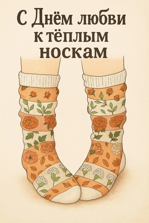 Приятнее всего, когда подаренные носочки — в полосочку. Почему-то кажется, что они и теплее, и нежнее тех, что с другим рисунком. Если же связать носки для вас — непосильное дело, то можно их купить или на крайний случай заштопать те, что давно нуждаются в починке, но до которых не доходили руки в другие дни. Или подарить одну из наших открыток — они тоже согреют, если не ноги, то душу.