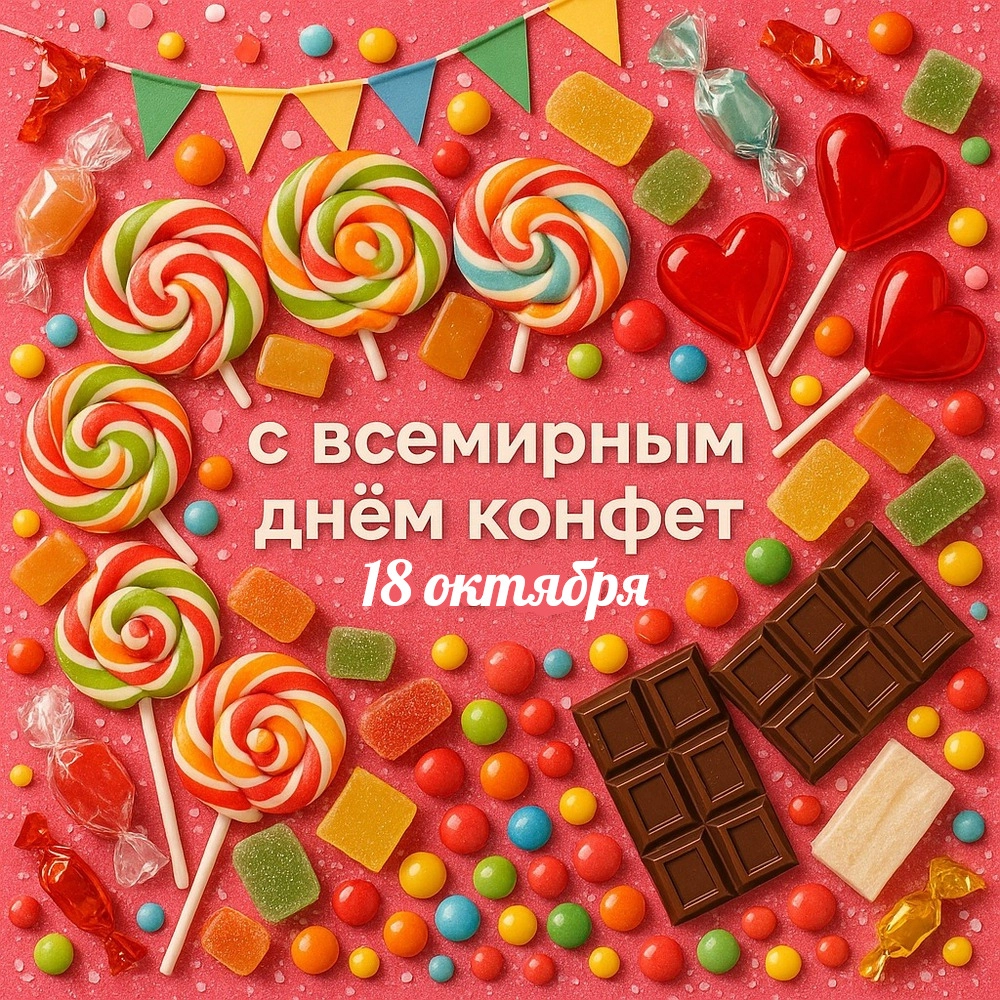 И, конечно, Всемирный день конфет. Какое же без них счастье? А с ними даже самый грустный день становится радостнее. Хотите напомнить об этих событиях своим подругам или поздравить их – отправьте одну из наших открыток.