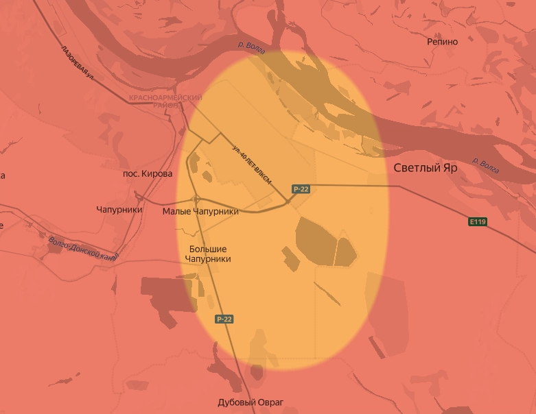 Крошечным очагом, свободным от этого раздражителя, станут в ближайшие два дня небольшая часть самого южного, Красноармейского района Волгограда в районе улицы 40 лет ВЛКСМ, а также несколько населенных пунктов Светлоярского района, в числе которых Большие и Малые Чапурники. Сам рабочий поселок Светлый Яр остается за чертой этого оазиса.