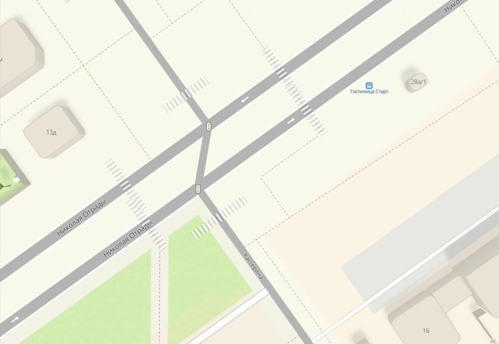Перекресток здесь непростой: первая дорога пересекает вторую по диагонали.