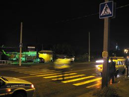 Через несколько десятков метров неопытный водитель не справился с управлением, и автомобиль на скорости влетел в пешехода.