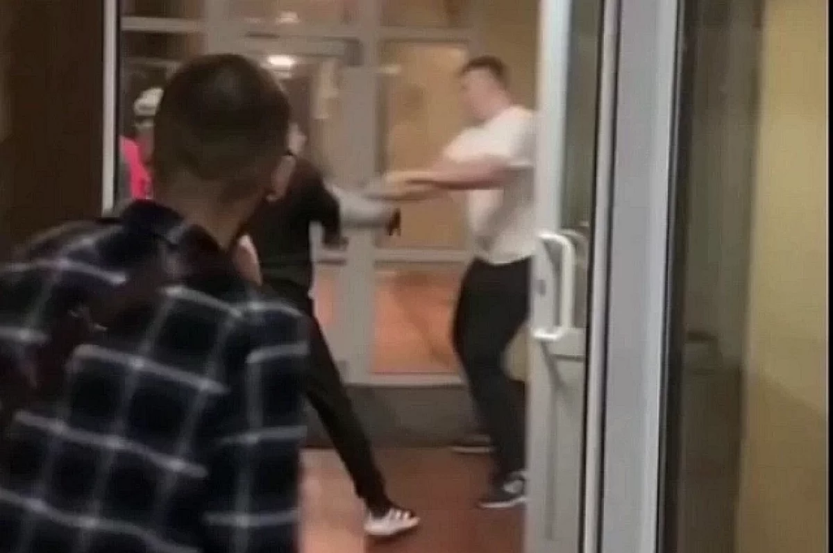 Судя по видео, стычка началась еще в вестибюле отеля. В кадр попало, как один из постояльцев наблюдает за толкающимися молодыми людьми из-за двери. После толпа переместилась на парковку, где продолжилась потасовка.
