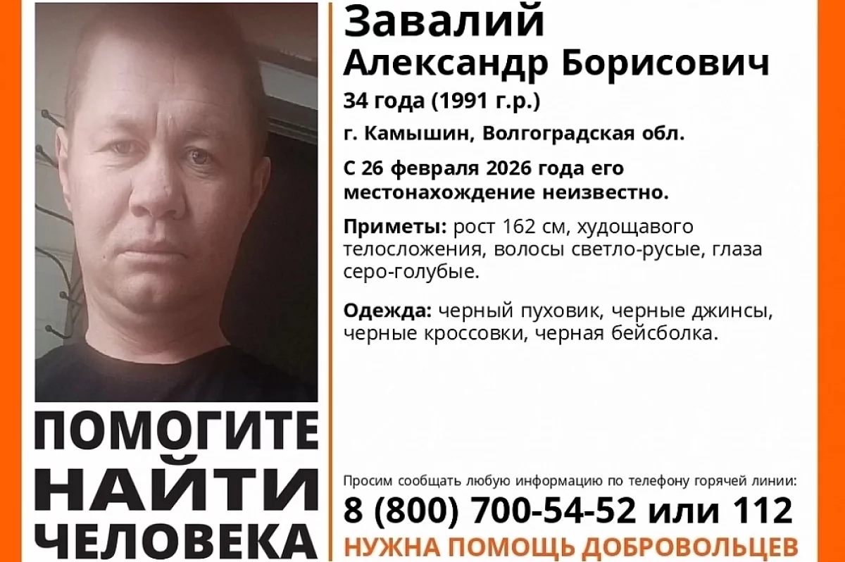 34-летний житель города Камышина был одет в черный пуховик, такого же цвета джинсы и кроссовке, на голове у него была черная бейсболка. Рост худощавого мужчины 162 сантиметра, у него светло-русые волосы и серо-голубые глаза. В соцсетях сообщается, что у него есть татуировки на обеих руках и проблемы со здоровьем, в связи с чем он может быть дезориентирован. Волонтерам требуется помощь добровольцев.