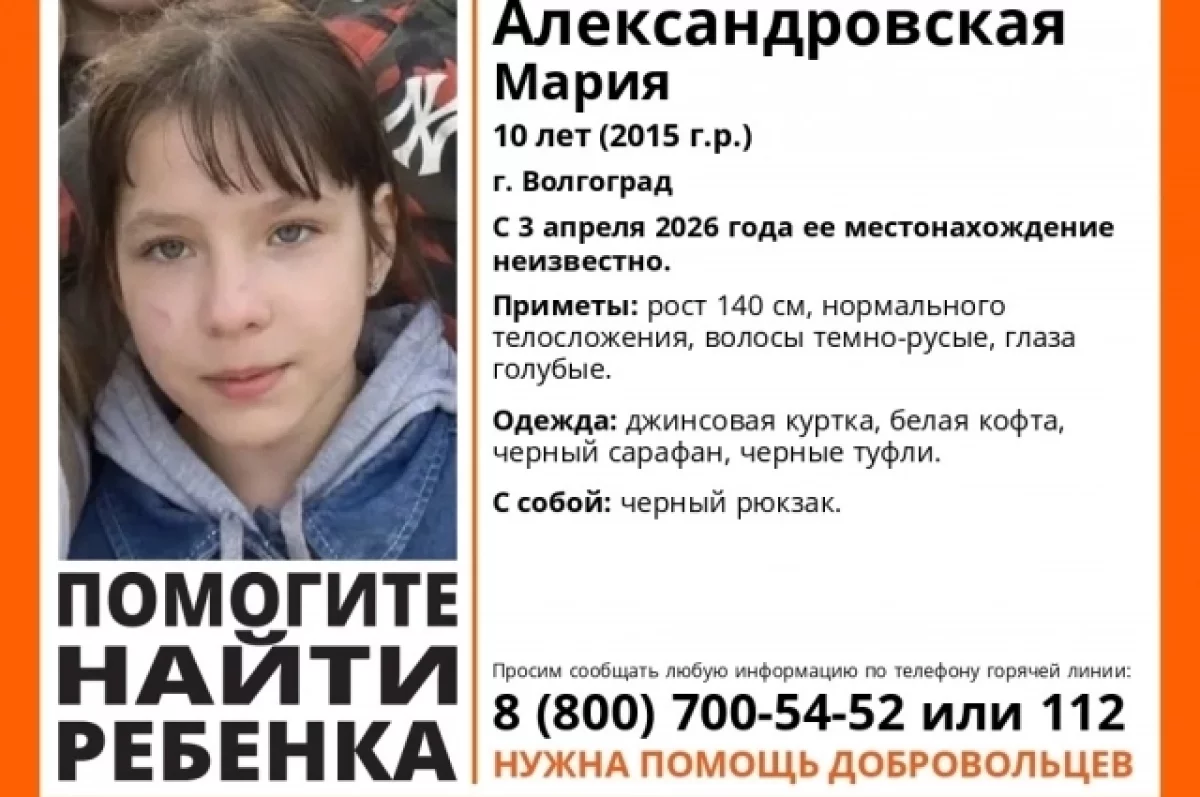 Добровольцы отряда «Лиза Алерт» просят помощи волгоградцев в поисках 10-летней школьницы, пропавшей в городе-герое.