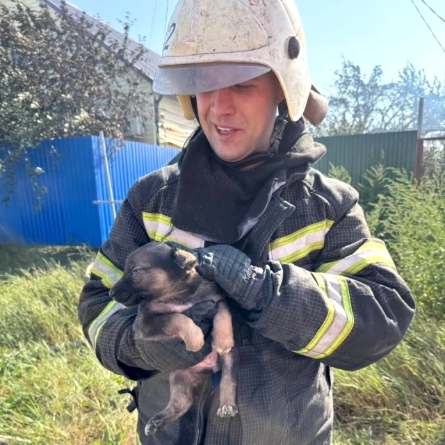 Сражаясь с пламенем, пожарные заметили: заброшку облюбовала собака с шестью щенками.
