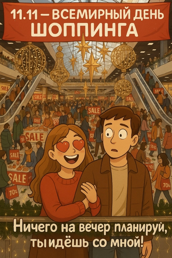 11 ноября во всем мире отмечают День шоппинга. Причем сначала его начали отмечать в Китае как День холостяка. И уж потом, в 2009 году одна из интернет-площадок предложила устроить в эту дату шоппинг-марафон.