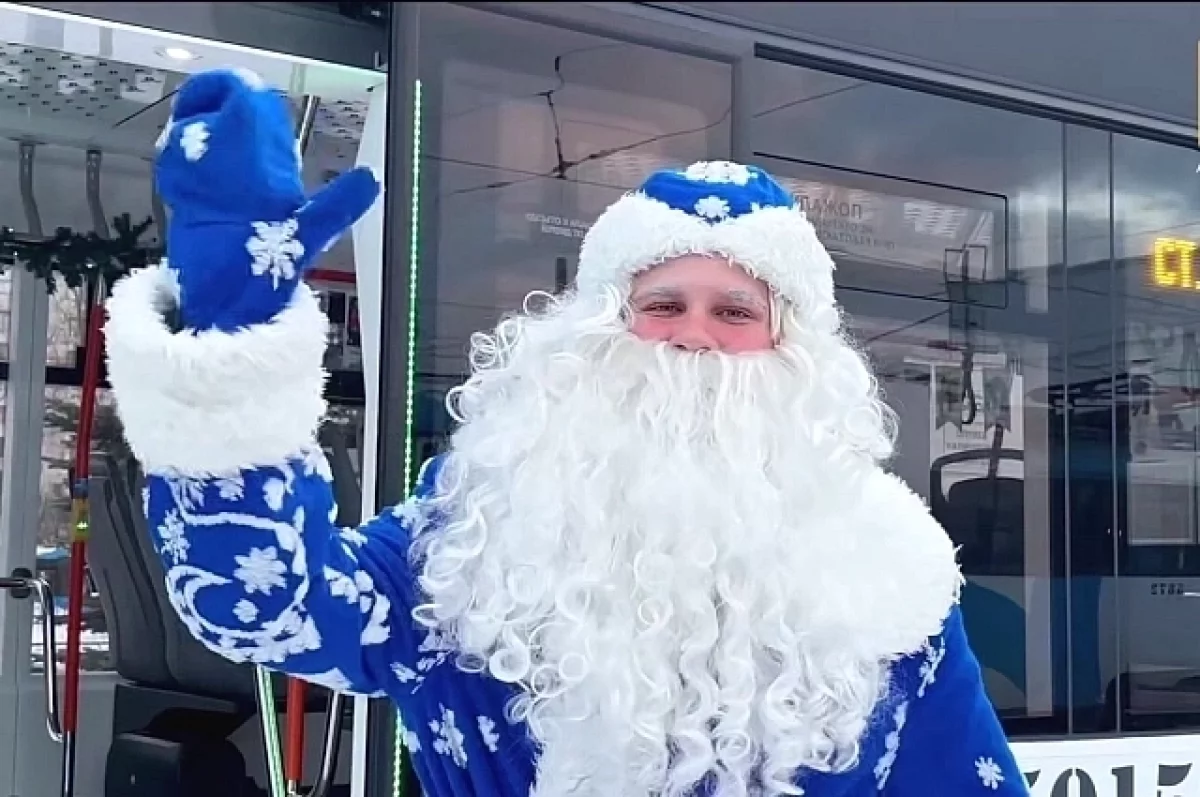 Дед Мороз, Снегурочка и Чебурашка поздравили 30 декабря с приближающимся Новым годом пассажиров скоростного трамвая в Волгограде.
