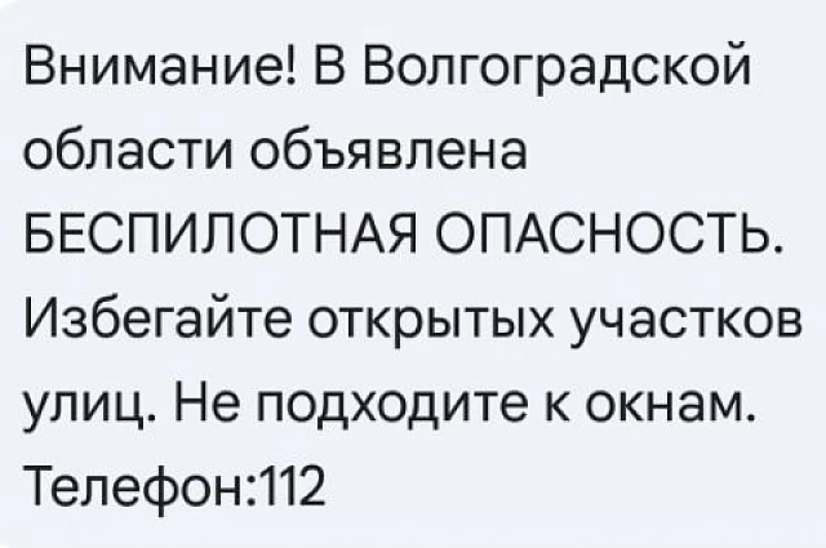 На телефоны волгоградцев второй раз за сутки 15 января поступили сообщения о беспилотной опасности. Предупреждения жители региона получили в начале одиннадцатого утра.