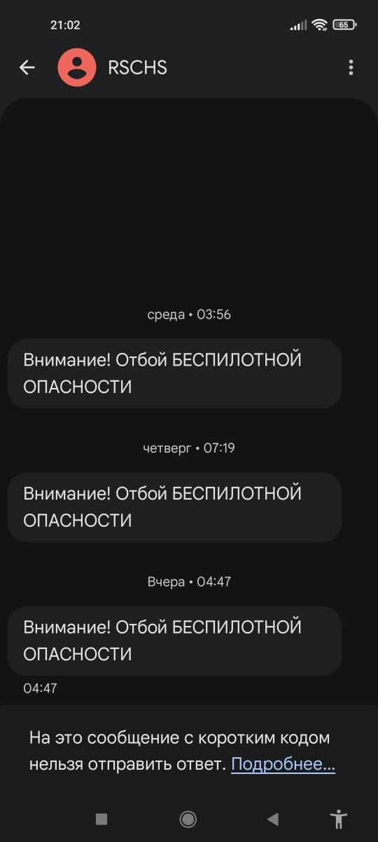 Об опасности атаки БПЛА сообщения в Telegram появились около половины девятого вечера 5 октября. Однако предупреждения по СМС от РСЧС получили не все — у многих в телефонах только сообщение об отмене опасности, у некоторых последнее СМС пришло в минувшее воскресенье.