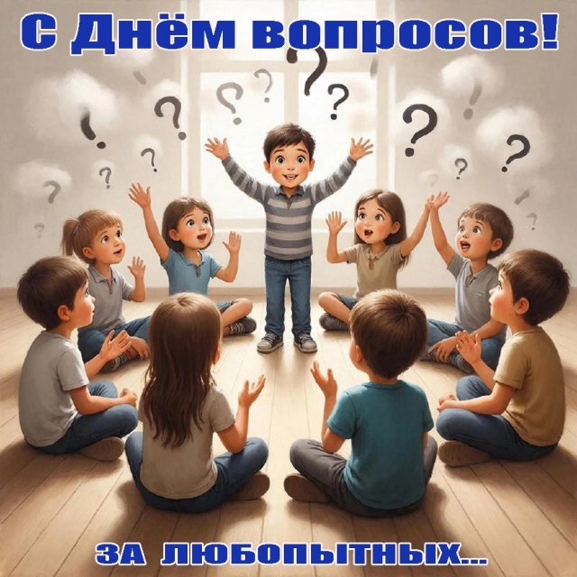 В этот день принято задавать как можно больше вопросов друзьям и близким, поддерживать детскую любознательность и не бояться проявлять интерес к миру. Чтобы поддержать любознательных друзей и напомнить им о важности вопросов, отправьте открытку из нашей коллекции.