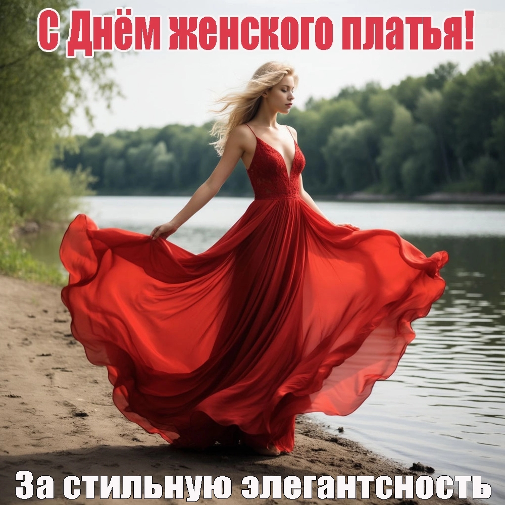 В социальных сетях проходят флешмобы с фотографиями нарядов, а модные магазины устраивают специальные акции. Платье на протяжении веков остаётся символом женственности и уверенности в себе. Чтобы порадовать подруг и напомнить им об их красоте, отправьте им стильную открытку из нашей коллекции.