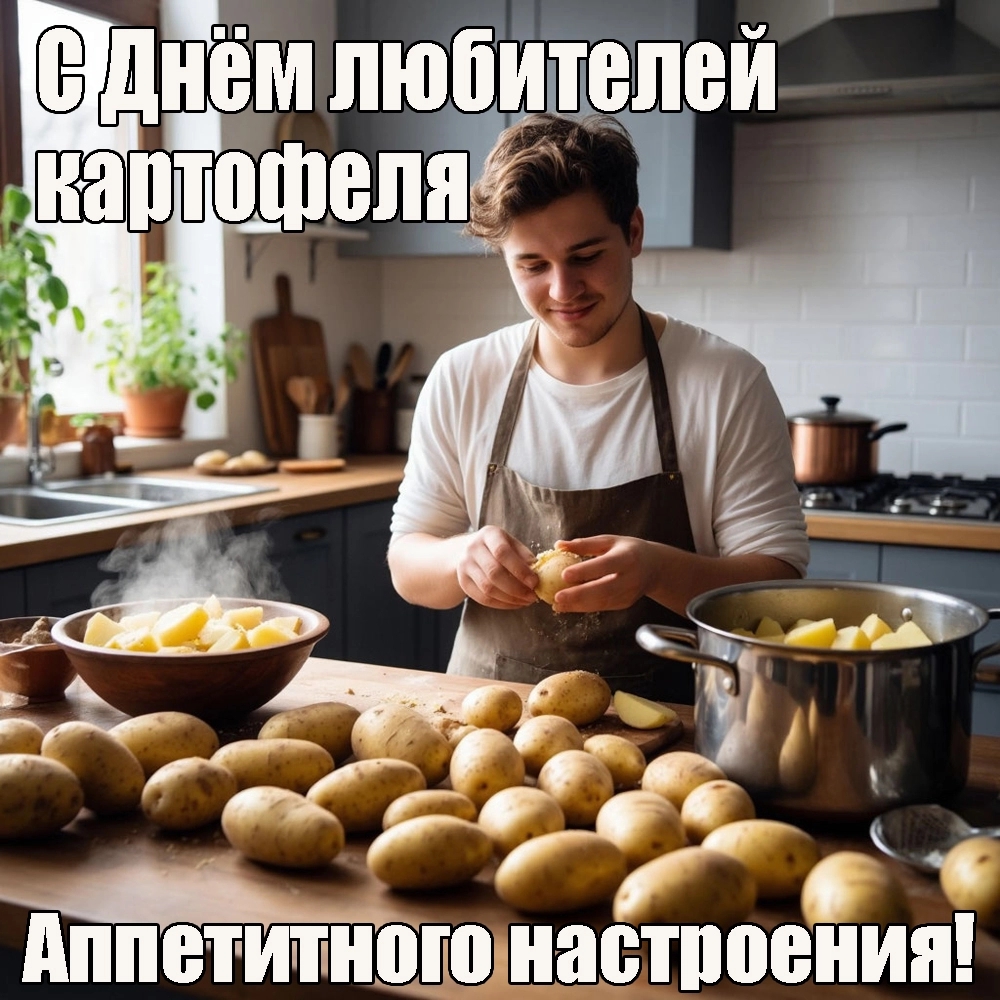 Также 8 февраля — международный «картофельный» день, который отмечают все ценители этого универсального продукта. Праздник родом из США посвящён невероятному кулинарному разнообразию, которое дарят нам скромные клубни: от пюре и фри до драников и гратенов. Порадуйте любителей вкусно поесть забавной открыткой с символом праздника.