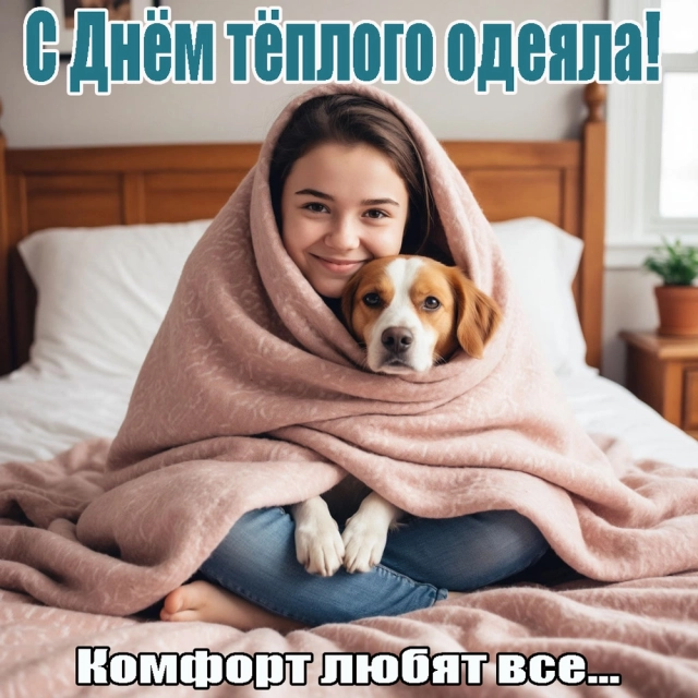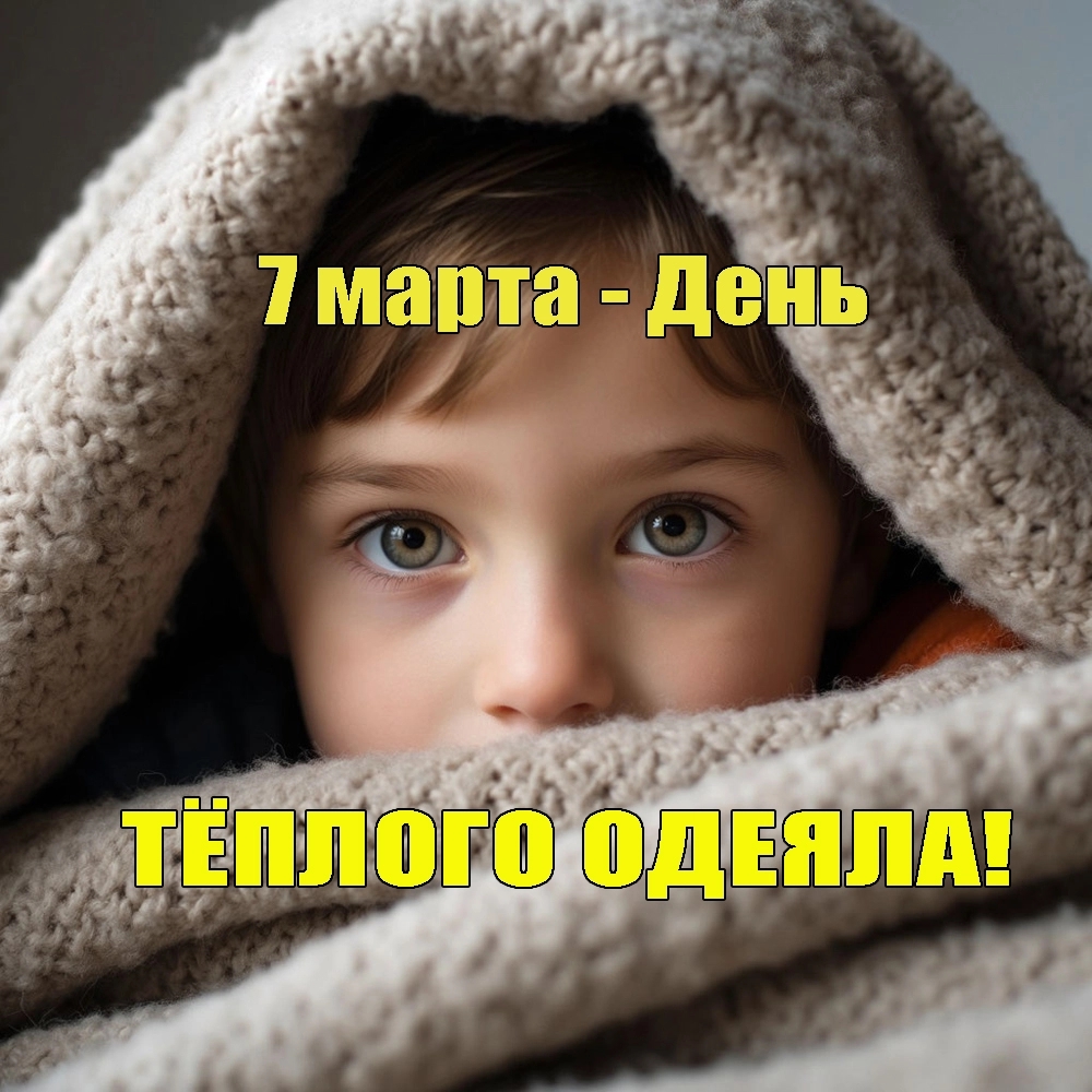 7 марта отмечается неофициальный, но очень уютный праздник — День тёплого одеяла. Это день, когда можно позволить себе замедлиться, завернуться в любимый плед и насладиться домашним теплом и покоем. Особенно актуален этот праздник в начале весны, когда погода ещё нестабильна, а за окном может быть сыро и ветрено. Чтобы пожелать близким уютного вечера и напомнить о важности заботы о себе, отправьте им тёплую открытку из нашей подборки.