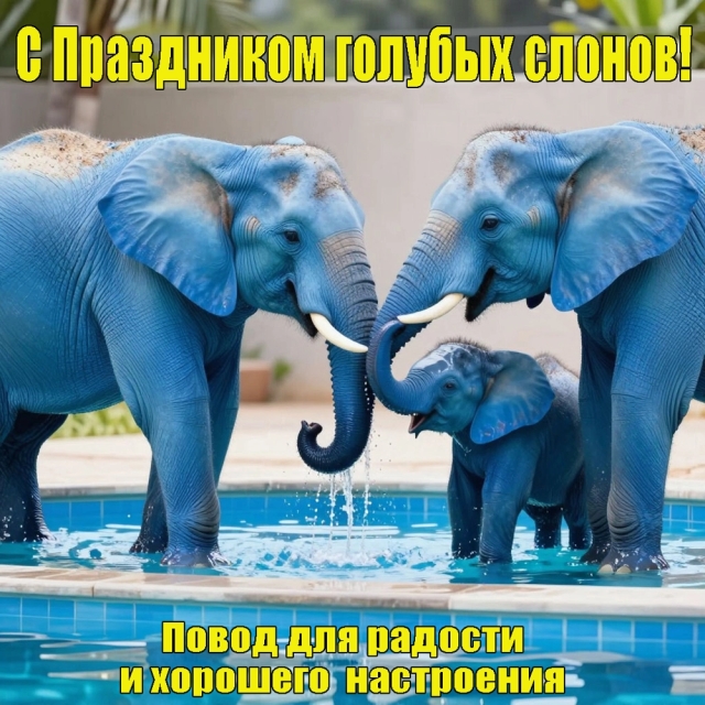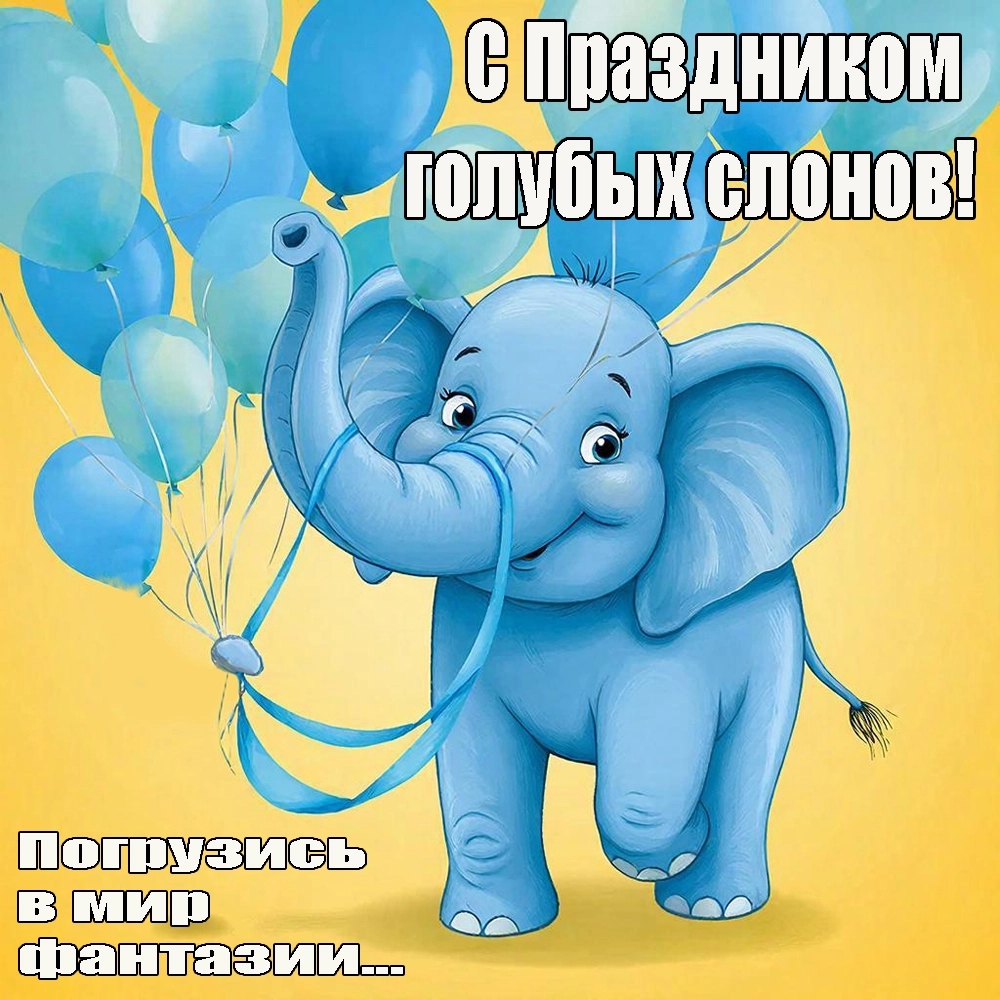 В этот день принято собираться с друзьями или в семейном кругу, чтобы поделиться своими мечтами — теми самыми «голубыми слонами», о которых мы мечтали в детстве и продолжаем мечтать сейчас. Многие украшают дом голубыми цветами и фигурками слонов, устраивают тематические вечеринки или просто радуются жизни, проявляя свою индивидуальность. Чтобы подарить близким частичку волшебства и напомнить им о важности мечты, выберите милую открытку со слоником в нашей коллекции.