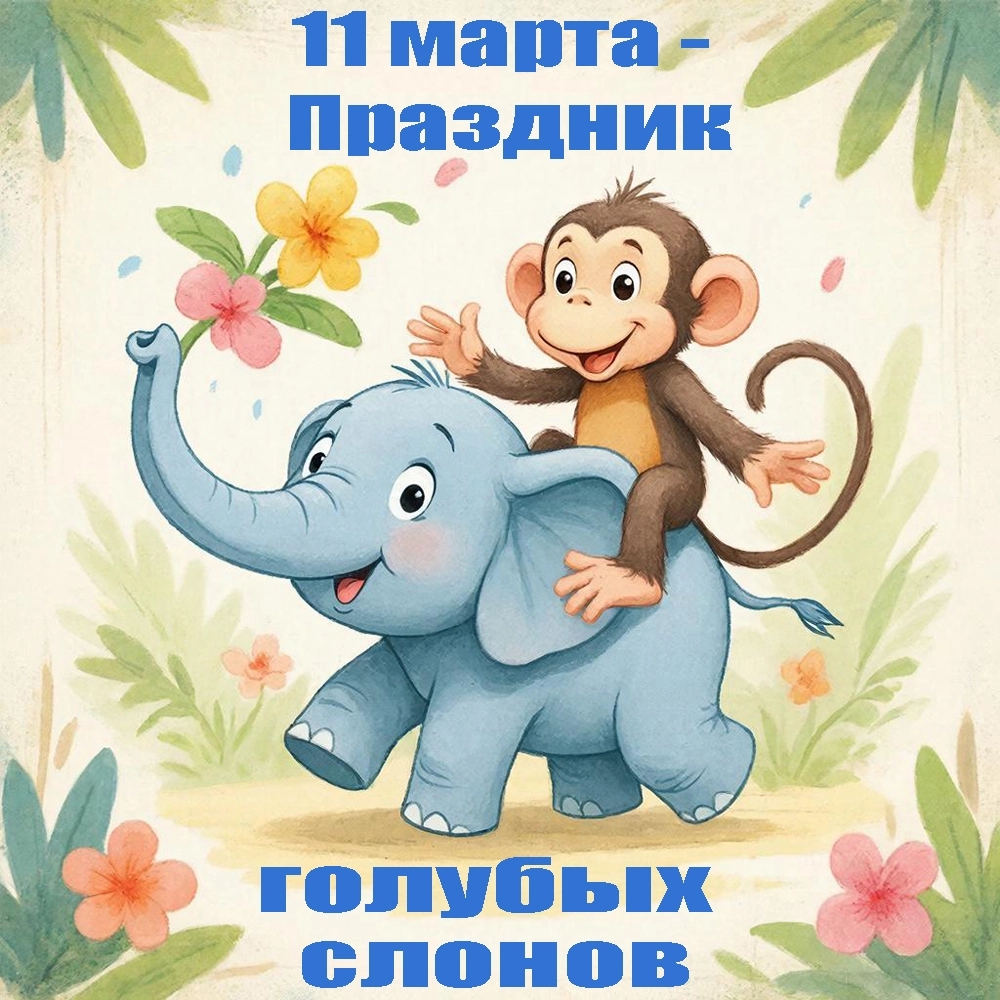 11 марта отмечается Праздник голубых слонов — необычный день, посвящённый фантазии, творчеству и умению мечтать. Точная история его появления остаётся загадкой: одни связывают его с мифологическими сказаниями о волшебных существах, другие считают символом нестандартного мышления.