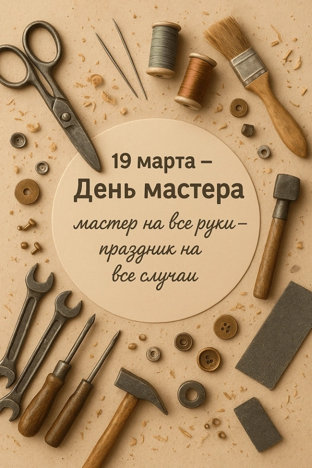 19 марта отмечается День Мастера — профессиональный праздник всех, кто в совершенстве владеет своим ремеслом и вкладывает душу в любимое дело. Праздник впервые предложил мексиканский фонд ремесел, поставив его в один день с католическим днем святого Иосифа, плотника.