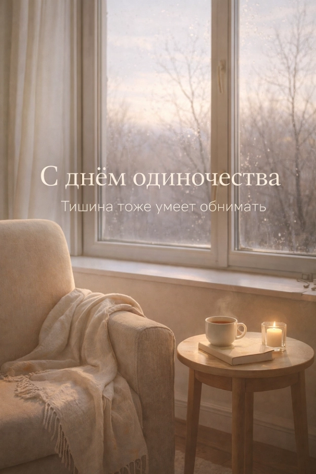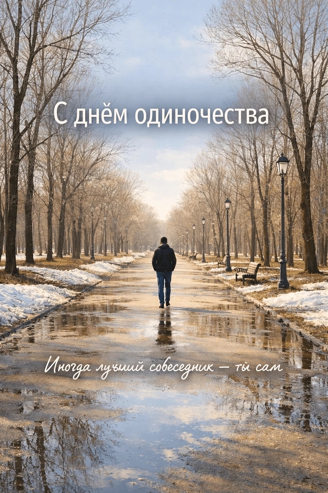 В этот день принято уделить время себе: прогуляться в тишине, почитать книгу, заняться любимым хобби или просто побыть в покое без чувства вины. Чтобы поддержать близких, которые ценят своё личное пространство, или напомнить им, что быть одному — не значит быть одиноким, выберите душевную открытку из нашей коллекции.