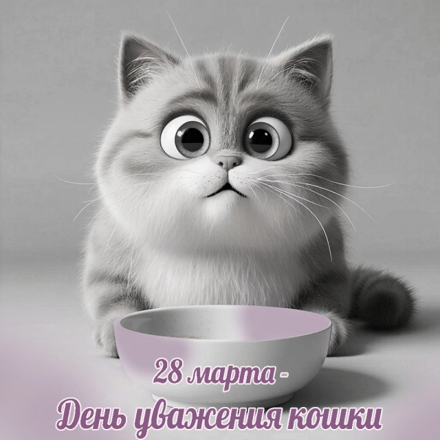 28 марта во всём мире отмечается День уважения кошки — праздник, призванный напомнить, что кошка не просто пушистый питомец, а самостоятельная личность со своими привычками, характером и потребностями, которые заслуживают нашего уважения. Согласно наиболее распространённой версии, дата связана с событием 28 марта 1384 года, когда король Англии Ричард II издал указ, запрещающий употреблять кошек в пищу на государственном уровне.