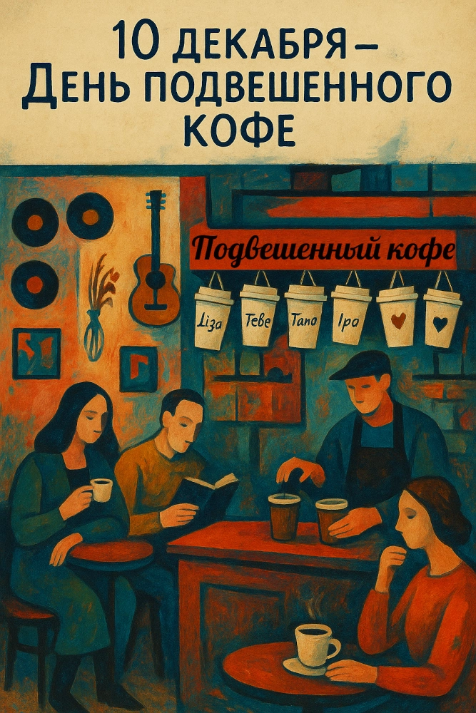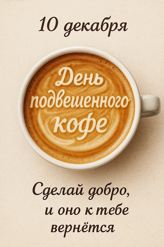 10 декабря во всём мире принято отмечать День подвешенного кофе. Подвешенным, кофе называют в том случае, если человек решил оплатить напиток для следующего покупателя.