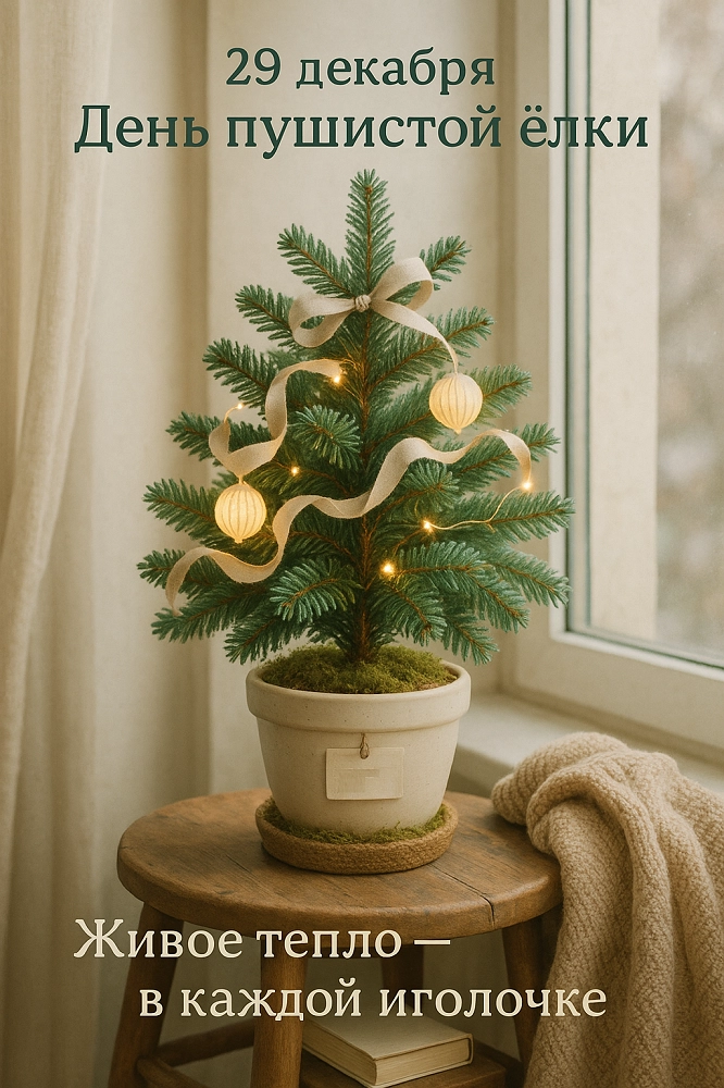 29 декабря отмечается День пушистой ёлки. Этот неофициальный праздник — яркий и тёплый символ предновогоднего времени. Он посвящён традиционному процессу украшения новогодней ели, который создаёт в доме неповторимую атмосферу чуда и собирает за этим занятием всю семью.