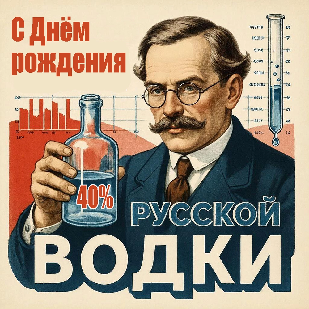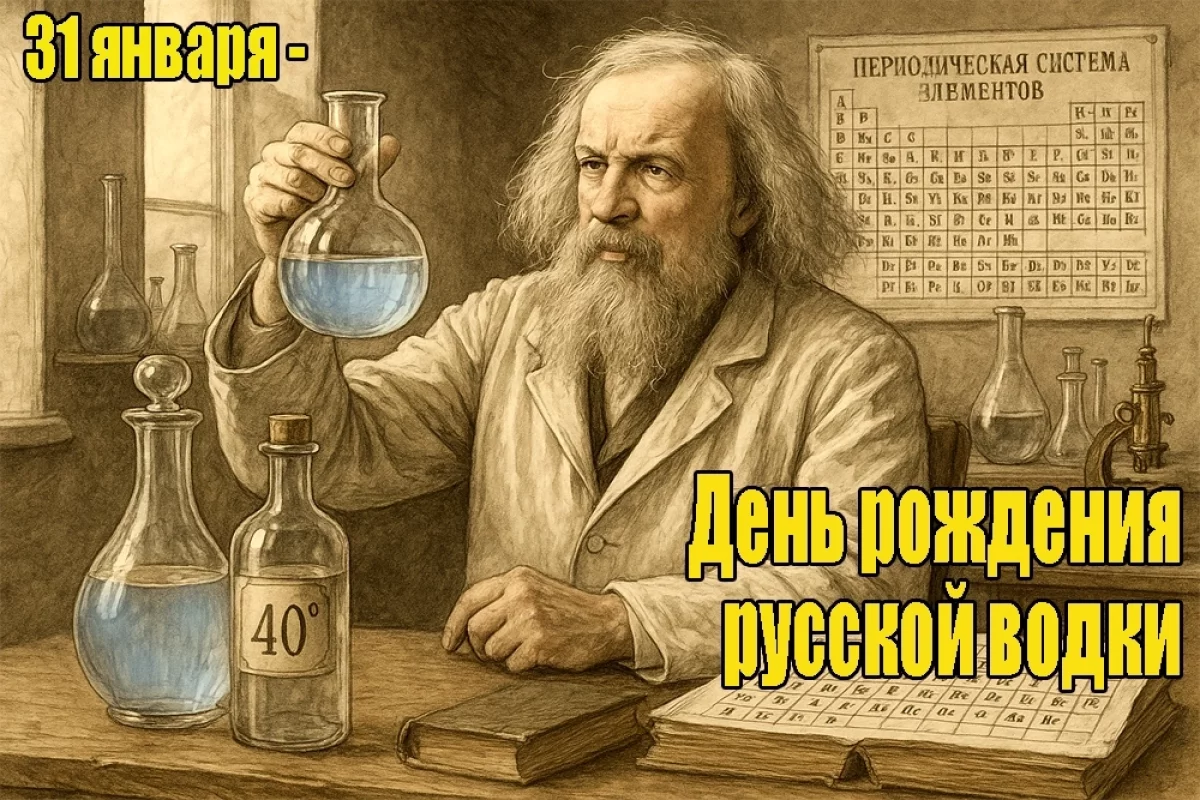 Поводом стал тот факт, что в последний день января 1865 года молодой профессор Дмитрий Менделеев защитил докторскую, темой которой было: «О соединении спирта с водою».