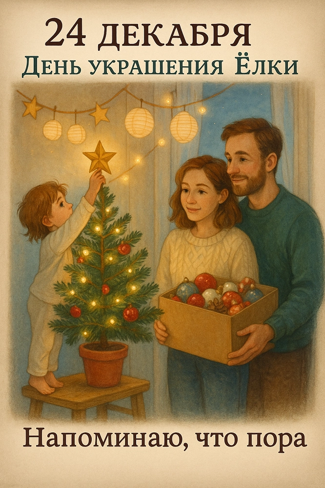 24 декабря отмечается День украшения ёлки. Этот праздник, пожалуй, лучший способ создать в доме волшебную атмосферу ожидания главного зимнего чуда. Он посвящён не только самому ритуалу, но и той радости, которую приносит совместная подготовка к праздникам.