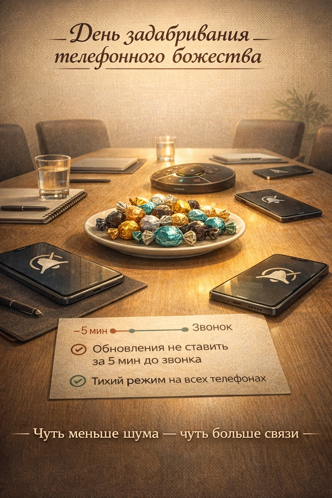17 января отмечается День задабривания телефонного божества. Этот неофициальный праздник посвящён нашей современной, почти мистической связи со смартфонами. Он предлагает с юмором отнестись к собственному гаджету, который, кажется, обладает собственным характером: то не соединяет, то звонит неожиданно в нужный момент.