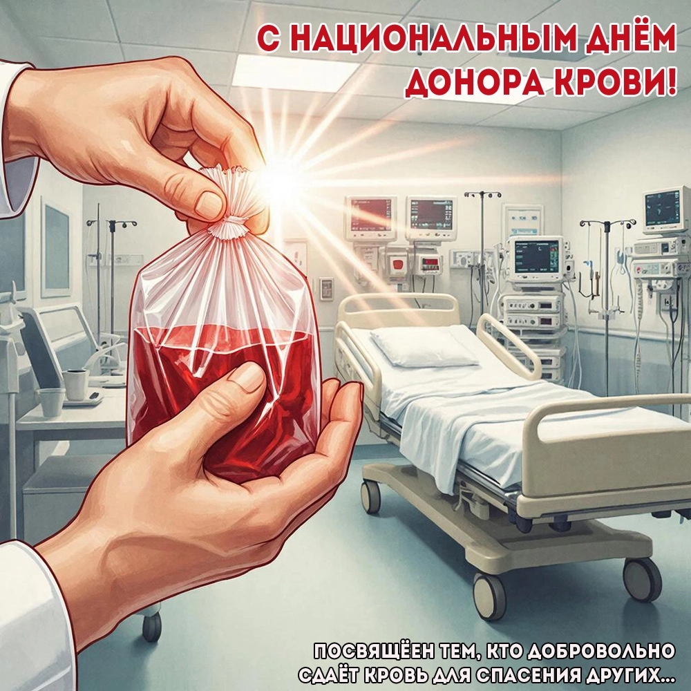 В этот день чествуют людей, которые безвозмездно делятся своей кровью ради здоровья и жизни совершенно незнакомых людей, а также врачей-трансфузиологов. По всей стране проходят акции по сбору крови, просветительские лекции и семинары, а также вручаются награды почётным донорам. Чтобы поздравить доноров и медиков с этим важным праздником и поблагодарить их за благородный труд, выберите подходящую открытку из нашей коллекции.
