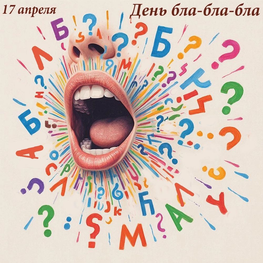 17 апреля также отмечается забавный праздник — День бла-бла-бла, задуманный как торжество бессмысленной болтовни обо всём и ни о чём. В 2006 году Рут и Томас Рой запустили этот день, чтобы побудить людей отвлечься от серьёзных тем и насладиться легкостью общения. В английском языке слово «blah» обозначает чушь, чепуху и бред, а его троекратное повторение используют для усиления значения сказанного.