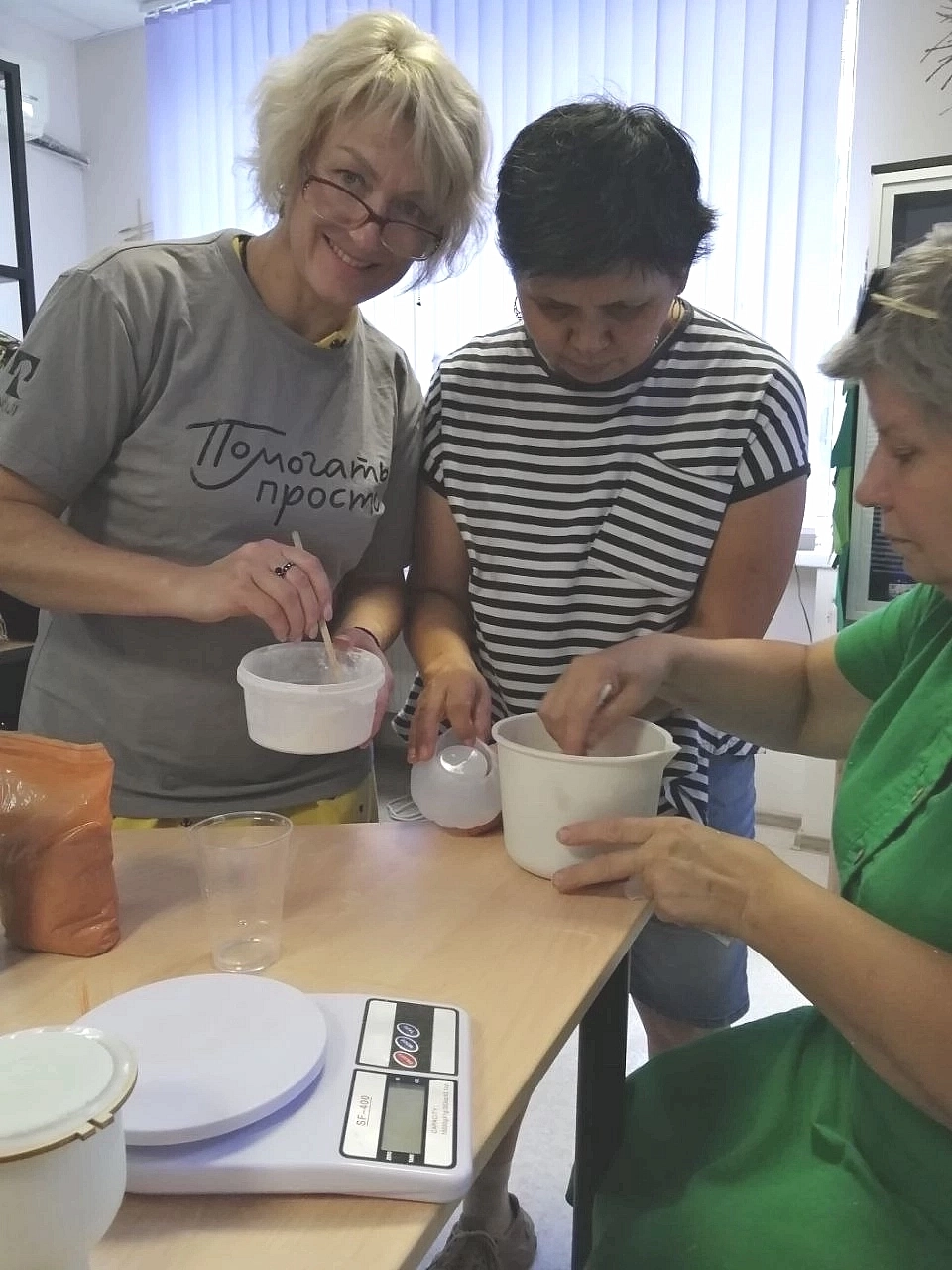 «Каждое занятие — открытие и для участников, и для меня. Сначала мы делали простые белые формы, а теперь начали использовать цветные пигменты. Видно, что людям нравится, они гордятся результатами, а некоторые хотят продолжить такие занятия дома».