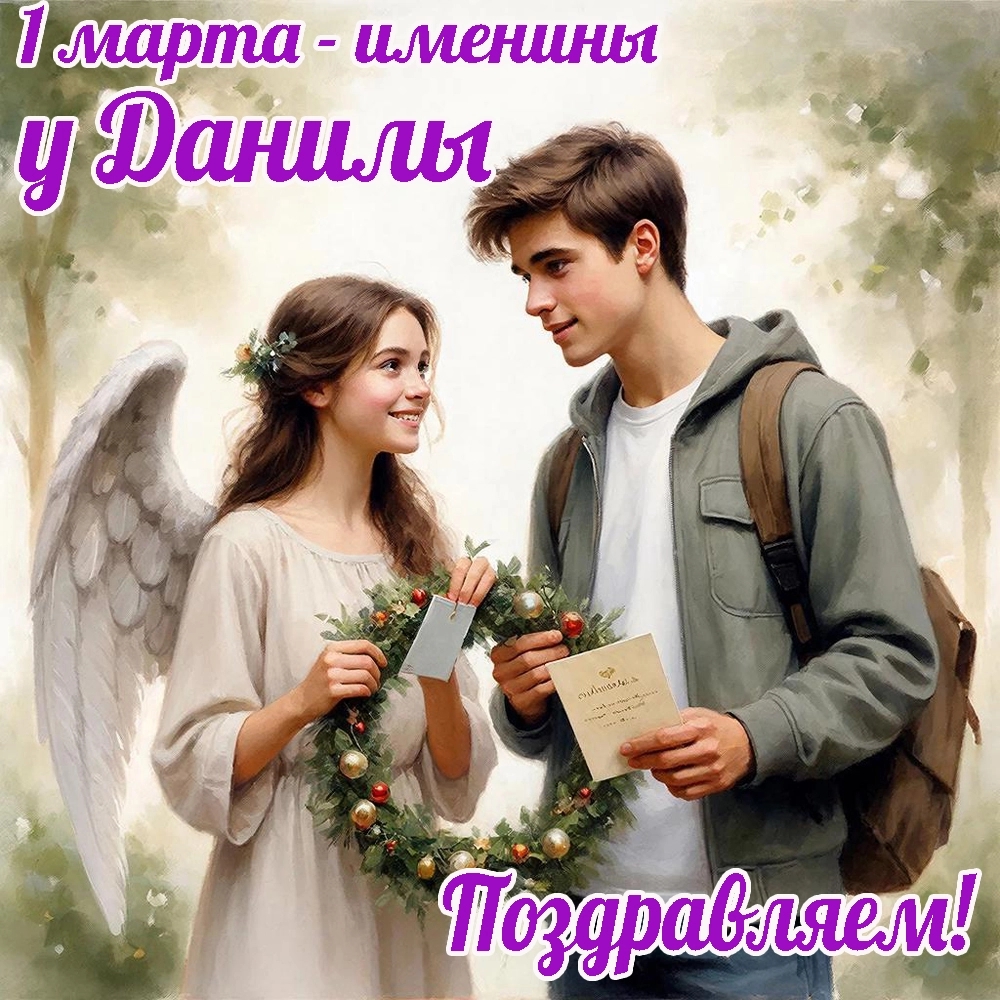 Имя Даниил (разговорная форма — Данил) переводится с древнееврейского как «Божий суд». Мужчины с этим именем обычно спокойны, добры, общительны и не выносят лжи, окружены друзьями и внимательны к своим детям. В первый день весны поздравить Данилов можно открыткой из нашей подборки.