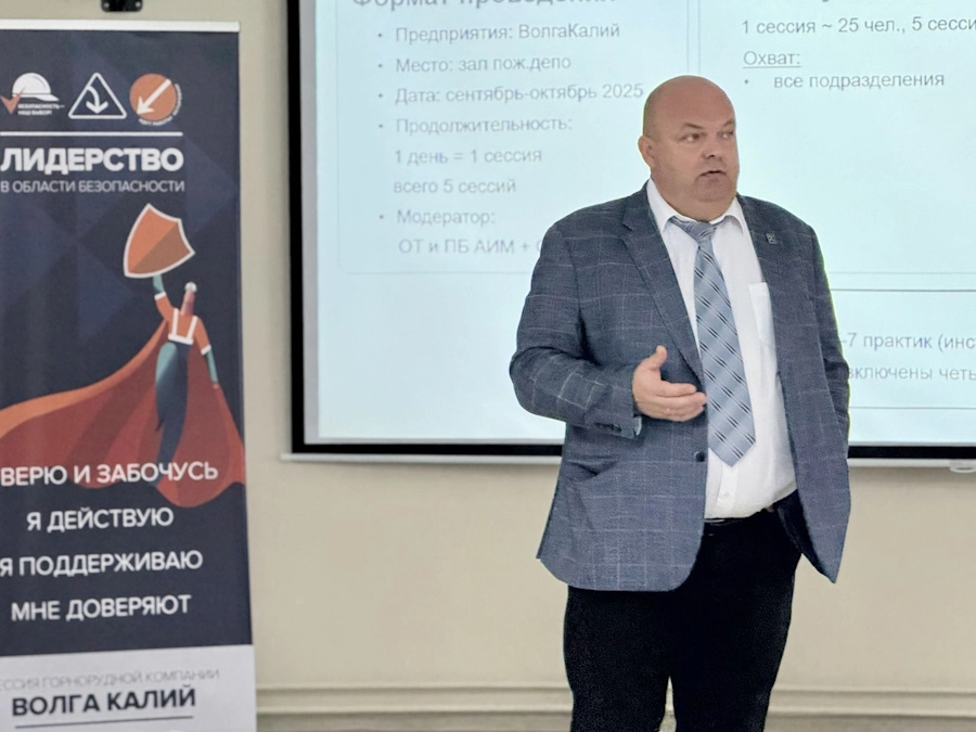 Поэтому сначала директор по производственной безопасности ЕвроХим-ВолгаКалия Алексей Ушаков рассказал участникам, какие инструменты и практики в области охраны труда и промбезопасности действуют на комбинате.