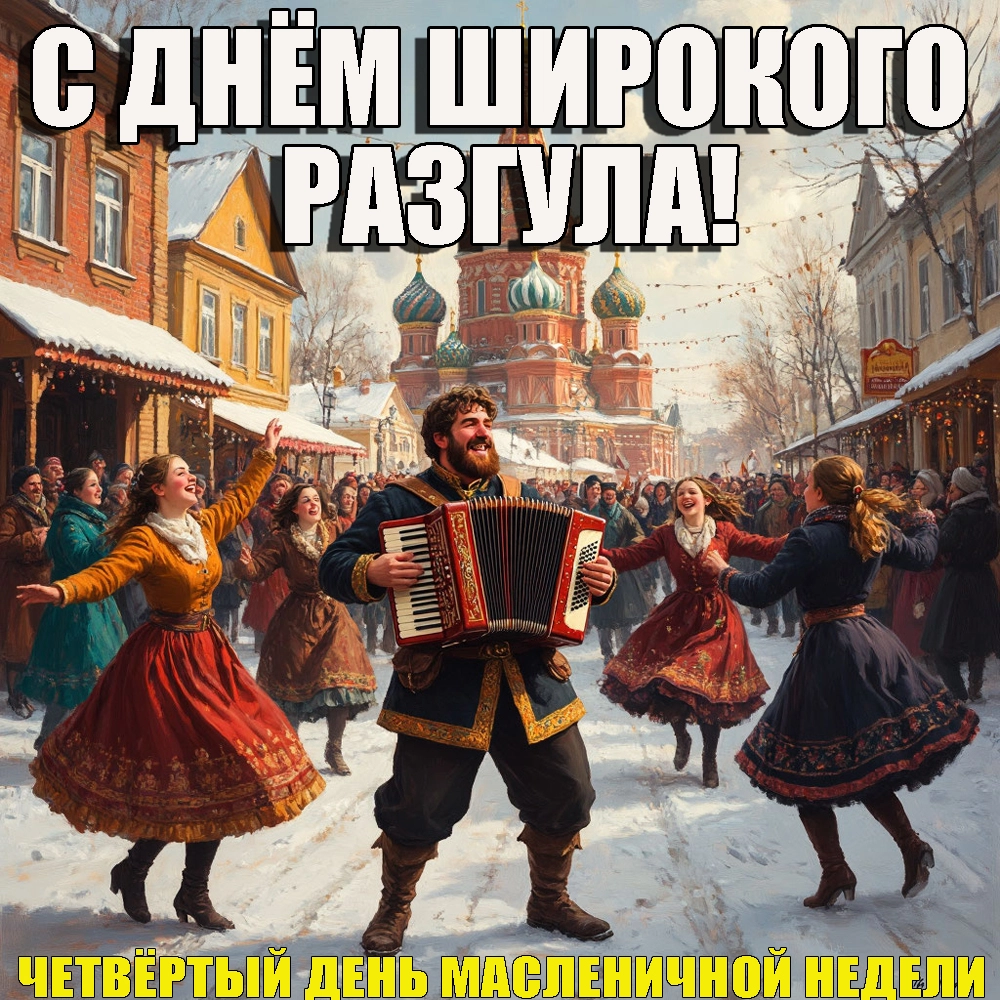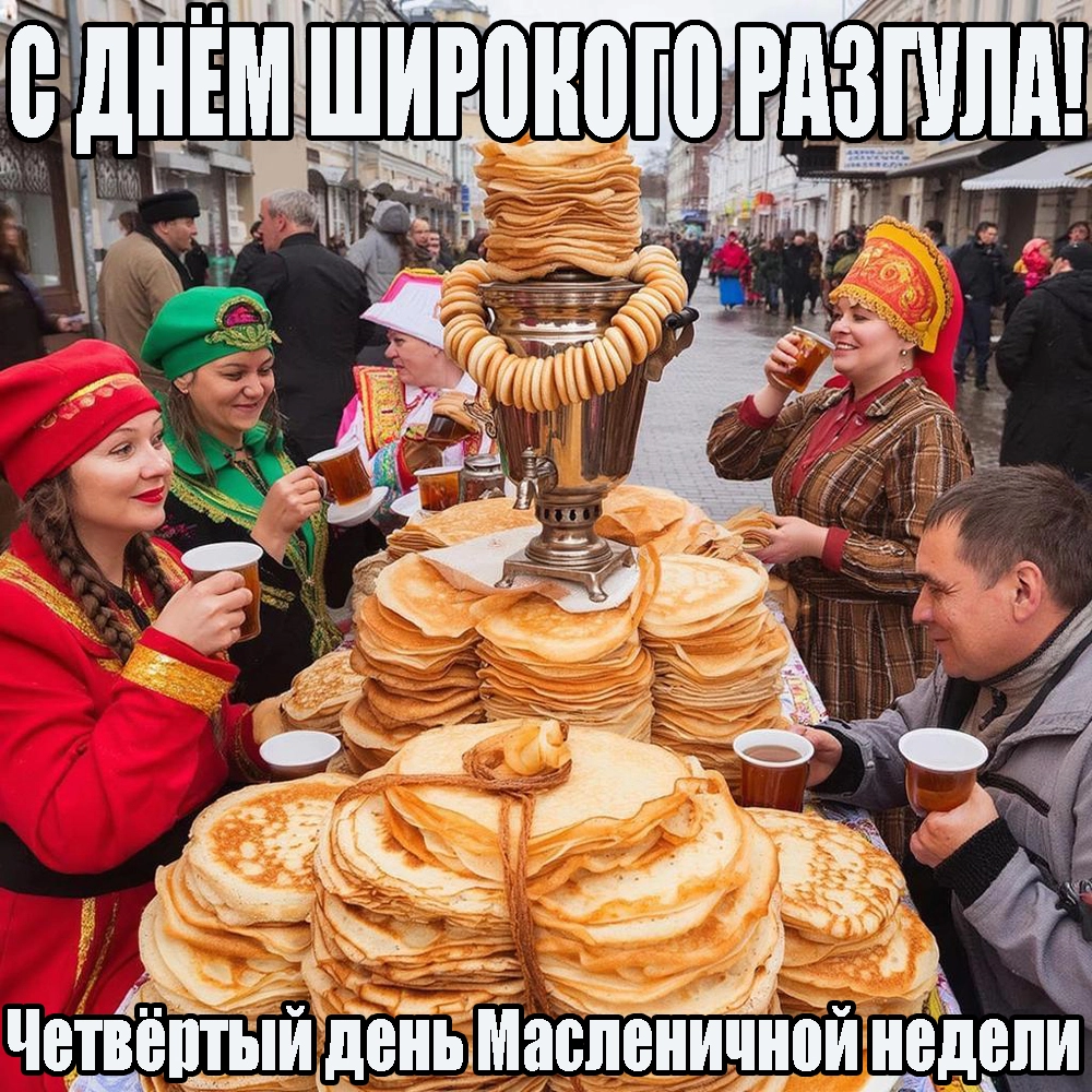 19 февраля 2026 года — четвёртый день Масленицы, который в народном календаре называют «Разгуляй» или «Широкий четверг».