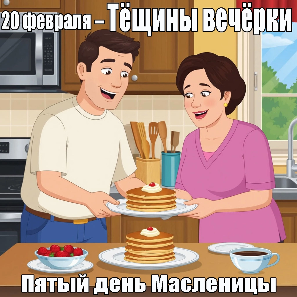 20 февраля 2026 года — пятый день Масленицы, который в народном календаре называют «Тёщины вечёрки».