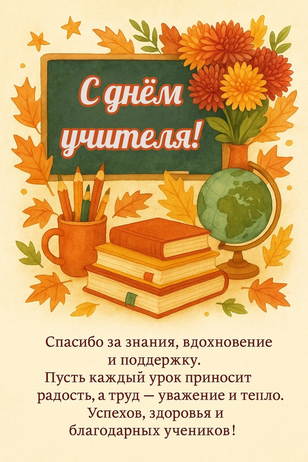 В этот праздничный день хочется выразить искреннюю благодарность всем учителям за их неоценимый вклад в развитие общества, за терпение и мудрость, за преданность своему делу. За то, что каждый день они делают мир лучше, умнее и добрее.