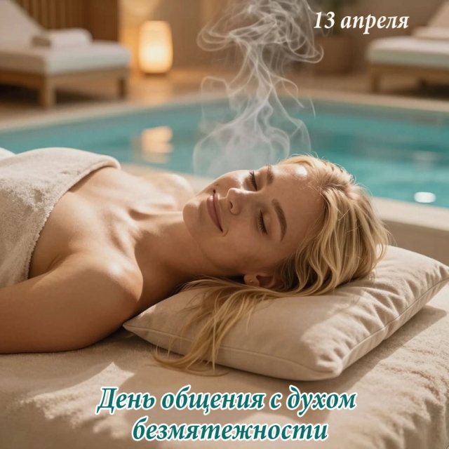 13 апреля также отмечается неофициальный праздник — День общения с духом безмятежности. В этот день принято найти немного покоя и пригласить дух безмятежности в свою жизнь: почитать книгу, посидеть при свечах или отправиться на поиски зацветающих почек. Вызывается он просто — нужно переделать все срочные дела, отложить бесполезные и направить внимание на собственные ощущения.
