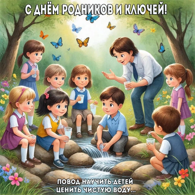 Традиционно в этот день крестьяне шли к источникам, чистили их от зимнего сора, приговаривая: «Подземная водица, отмыкаем тебе пути вешние», умывались родниковой водой и набирали её для питья, веря, что она дарует здоровье. Чтобы почтить этот древний обычай и поздравить близких с Днём родников, выберите душевную открытку из нашей коллекции.