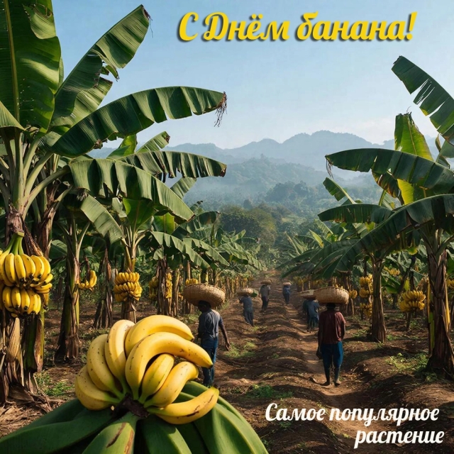 В этот день принято устраивать дегустации, готовить десерты с бананами и, конечно, просто есть их — бананы богаты калием и триптофаном, который помогает поднимать настроение. Чтобы порадовать близких и поздравить их с этим весёлым праздником, выберите яркую открытку из нашей коллекции.