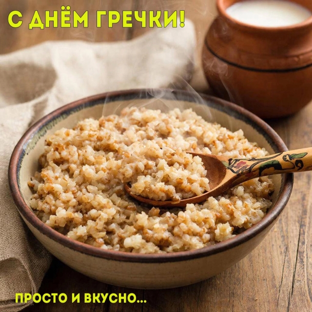 В этот день принято варить рассыпчатую кашу, печь гречневые блины и делиться рецептами. Чтобы пожелать близким крепкого здоровья и сытости, выберите аппетитную открытку из нашей коллекции. Или возьмите одну из более ранних, со Дня гречневой каши, который отмечался 17 марта.
