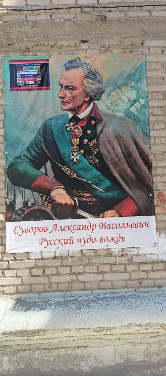 Образы российских героев — легендарных полководцев Александра Невского и Александра Суворова — украсили облезлые стены дома № 105.