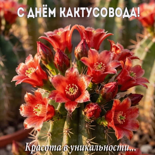 В этот день кактусоводы собираются вместе, чтобы обменяться опытом, показать свои коллекции и погрузиться в атмосферу уважения к природе. Чтобы поздравить знакомых цветоводов-любителей и порадовать их символичным подарком, выберите красивую открытку из нашей коллекции.