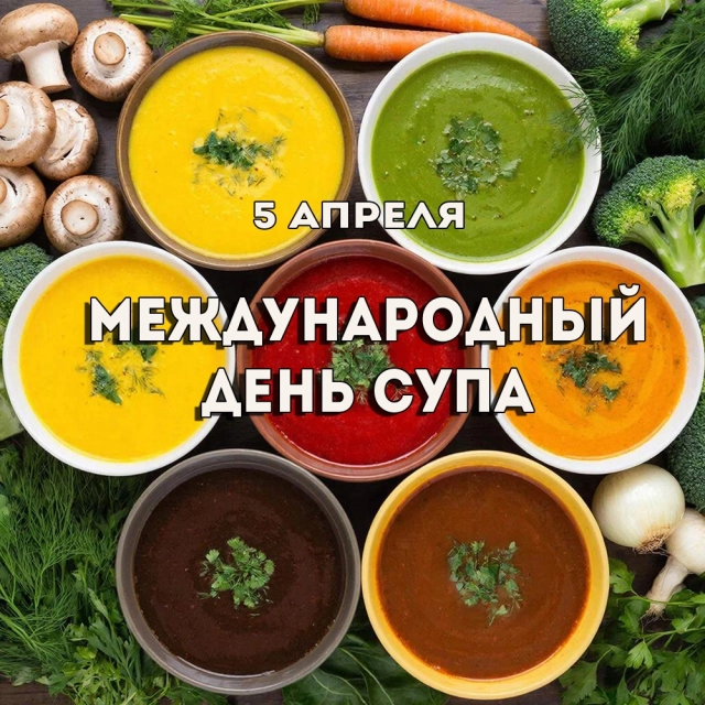 А ещё 5 апреля во всём мире отмечается Международный день супа — праздник, посвящённый одному из древнейших и самых полезных блюд в истории человечества. Точная дата учреждения праздника неизвестна, но идея возникла как способ объединить разные кулинарные традиции и напомнить о важности супов в ежедневном рационе. Первые супы появились ещё в древности, когда люди научились варить пищу в глиняной посуде.