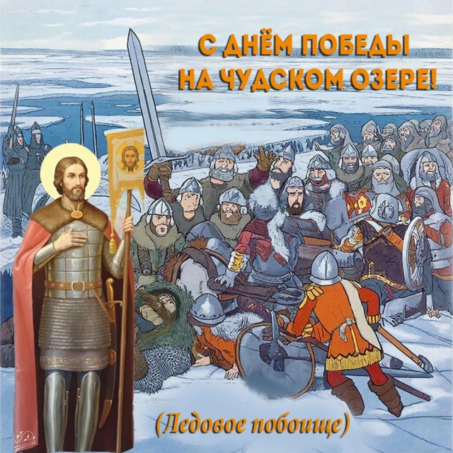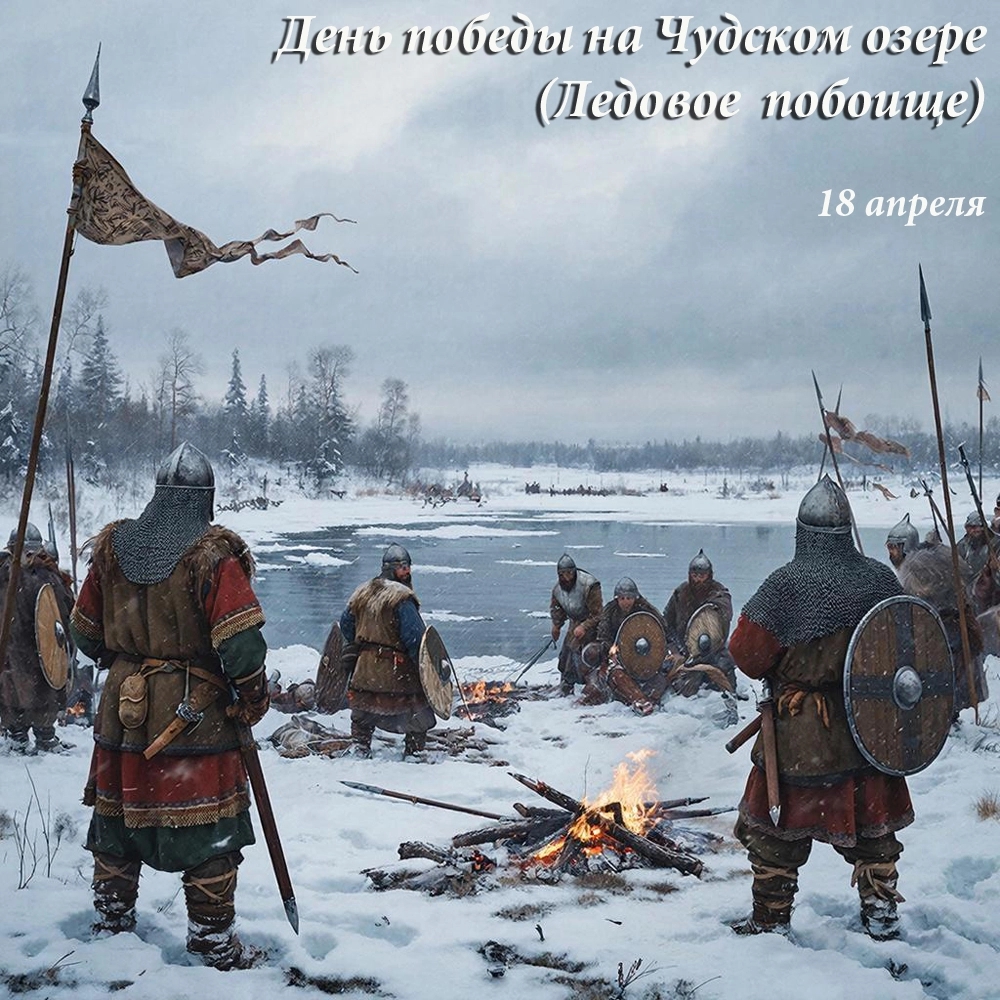 18 апреля в России отмечается День воинской славы — День победы русских воинов князя Александра Невского над немецкими рыцарями на Чудском озере. Битва, получившая название Ледовое побоище, произошла 5 апреля (по старому стилю) 1242 года. Сражение началось с атаки рыцарского «клина» на русский центр, но закованные в латы рыцари были охвачены с флангов княжеской конницей и зажаты на обрывистом берегу озера.